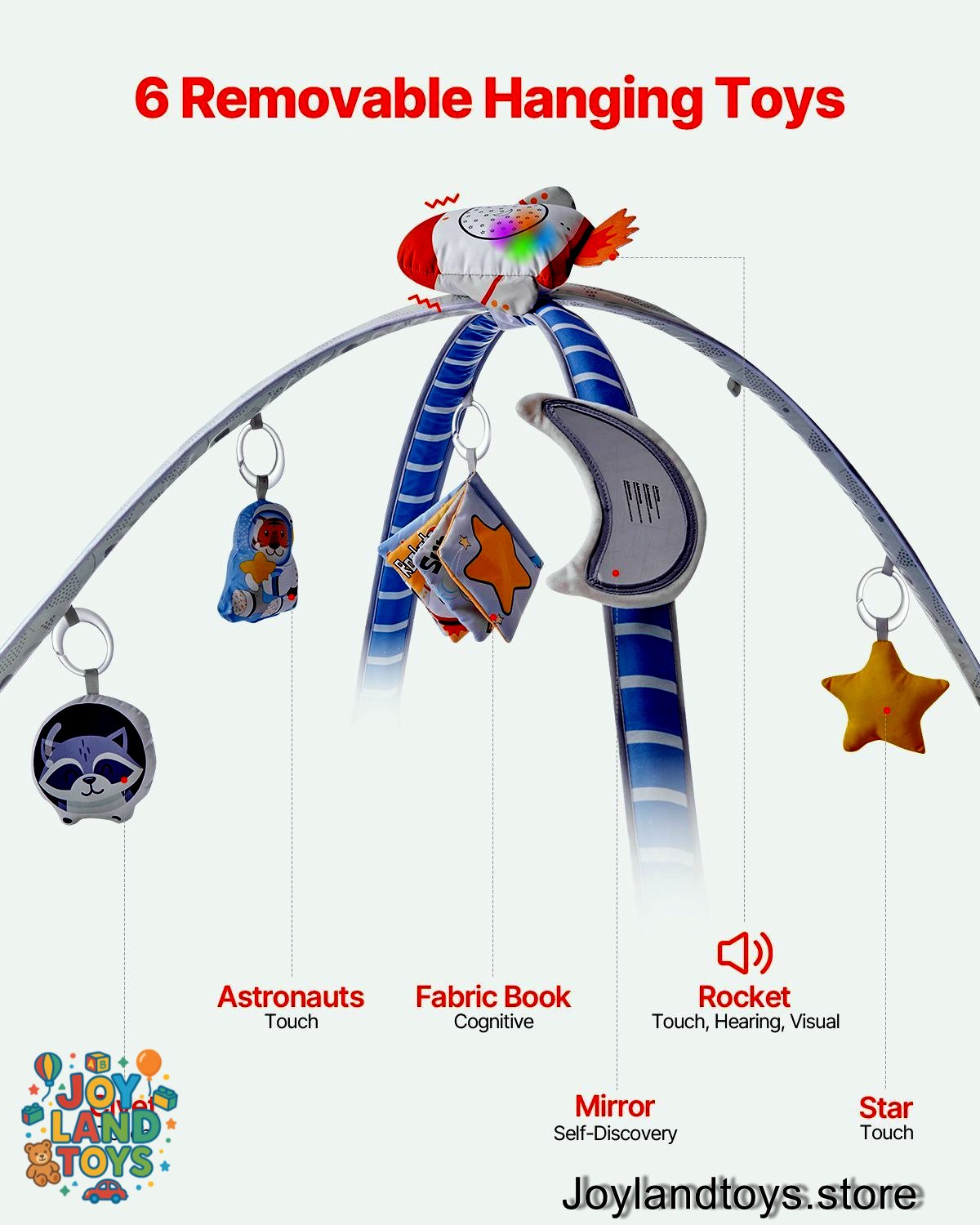 Joy Land Toys Baby Play Gym Mat – Tummy Time Activity Mat with 6 Sensory Toys